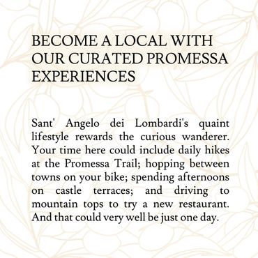 La Promessa is a prideful showcase of Southern Italy, providing guests the chance to explore it with curiosity. A charming network of towns and its friendly people await to experience the hidden gems of the Irpinia region.